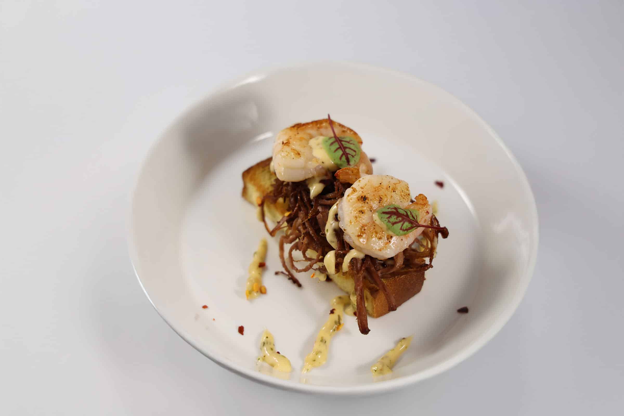 Brioche met Pulled Porc en Gamba’s