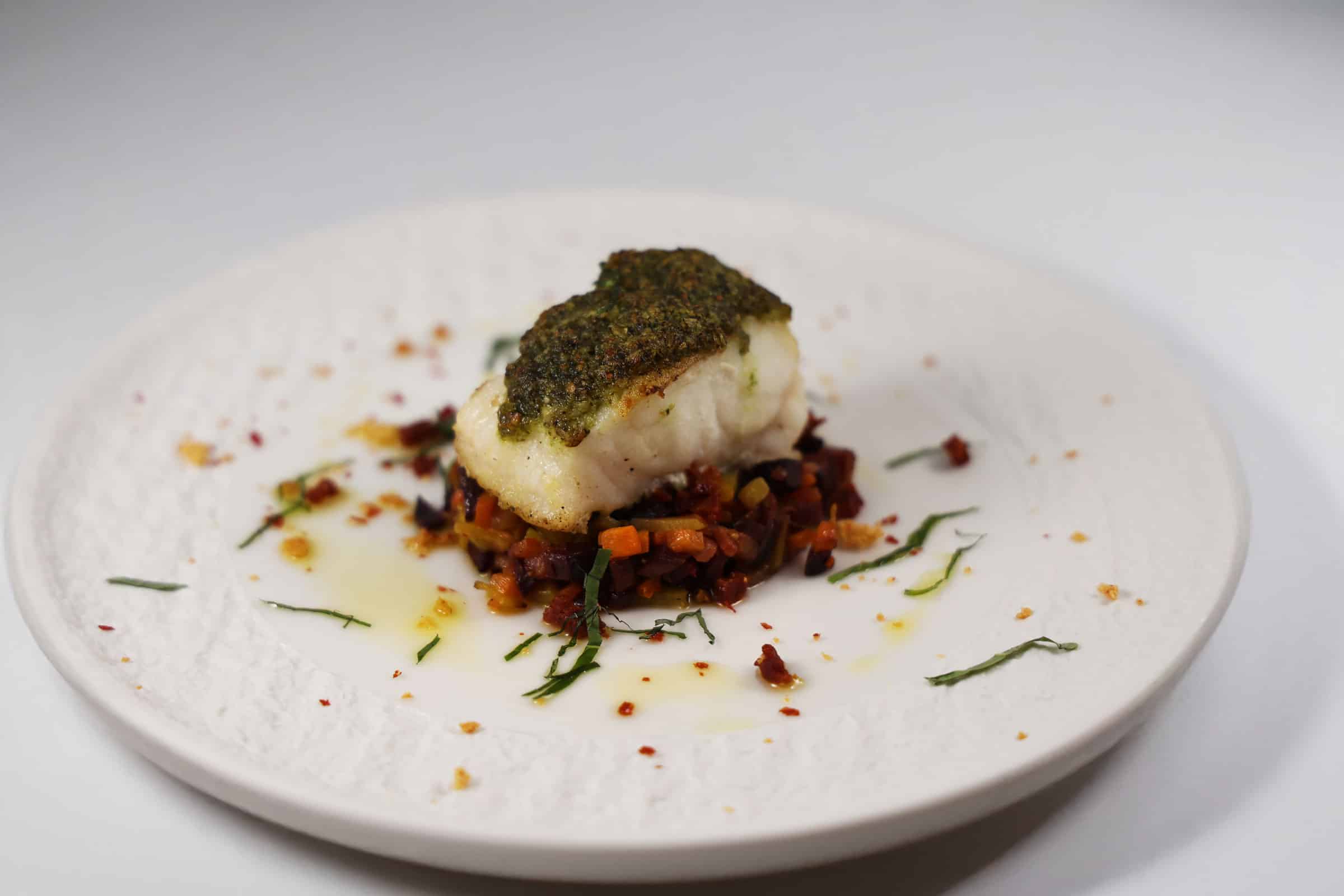 Zeewolf met kruidenkorst