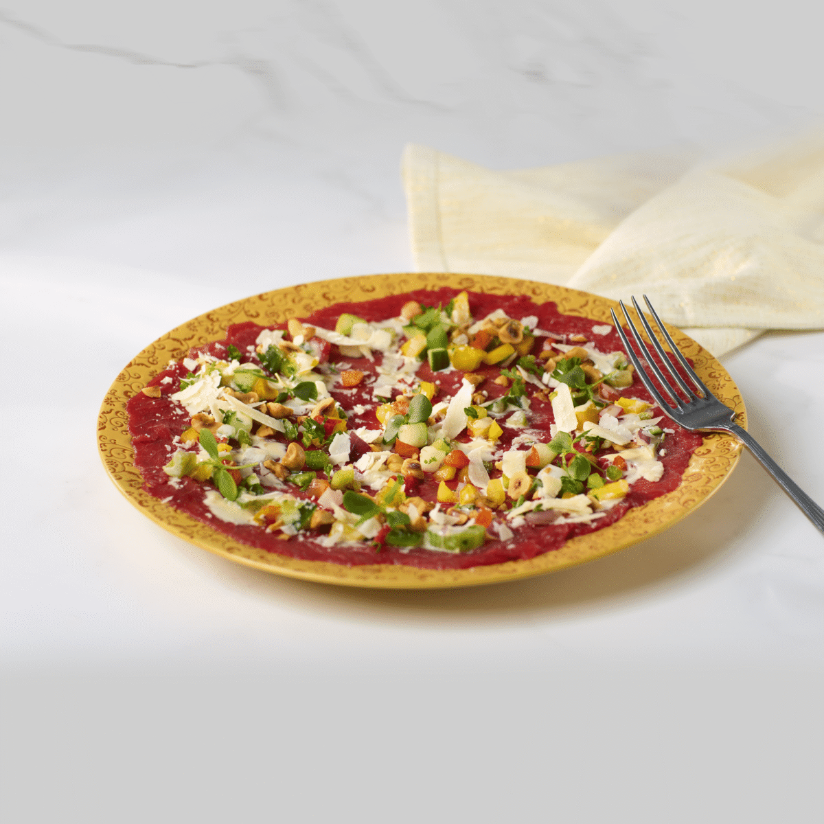 Carpaccio met rauwkost mix,